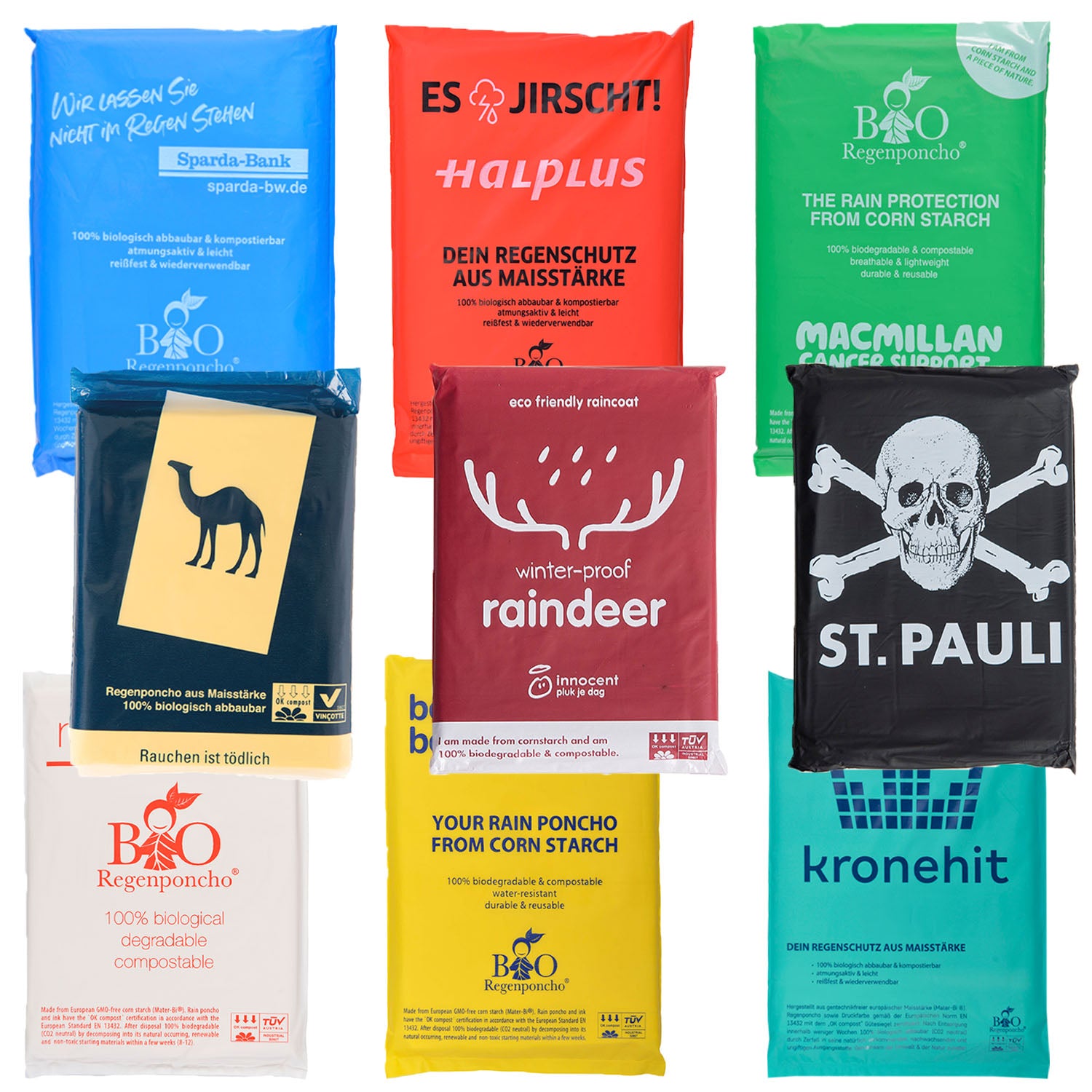 Unsere nachhaltigen Bio-Regenponchos aus 100 % biologisch abbaubarer Maisstärke (Mater-Bi®) bieten optimalen Schutz und individuelles Branding für Ihre Veranstaltung oder Ihr Unternehmen. Perfekt für Festivals und Firmen-Events – umweltfreundlich, praktisch und hochwertig.